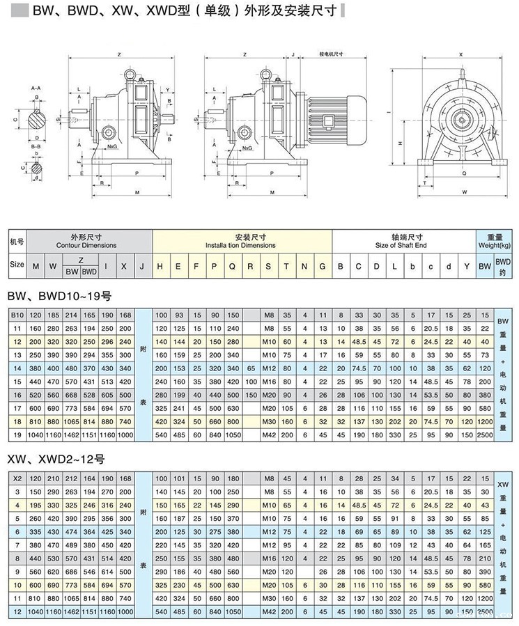 I produced the BW (Y), a single-stage transmission XW (Y) and the two-stage type transmission and BL (Y), XL (Y) type of single-stage and two-stage transmission, perform Q / 320801, JA010-2002 "pendulum line pin wheel reducer "corporate standards, their working conditions should meet the following requirements: